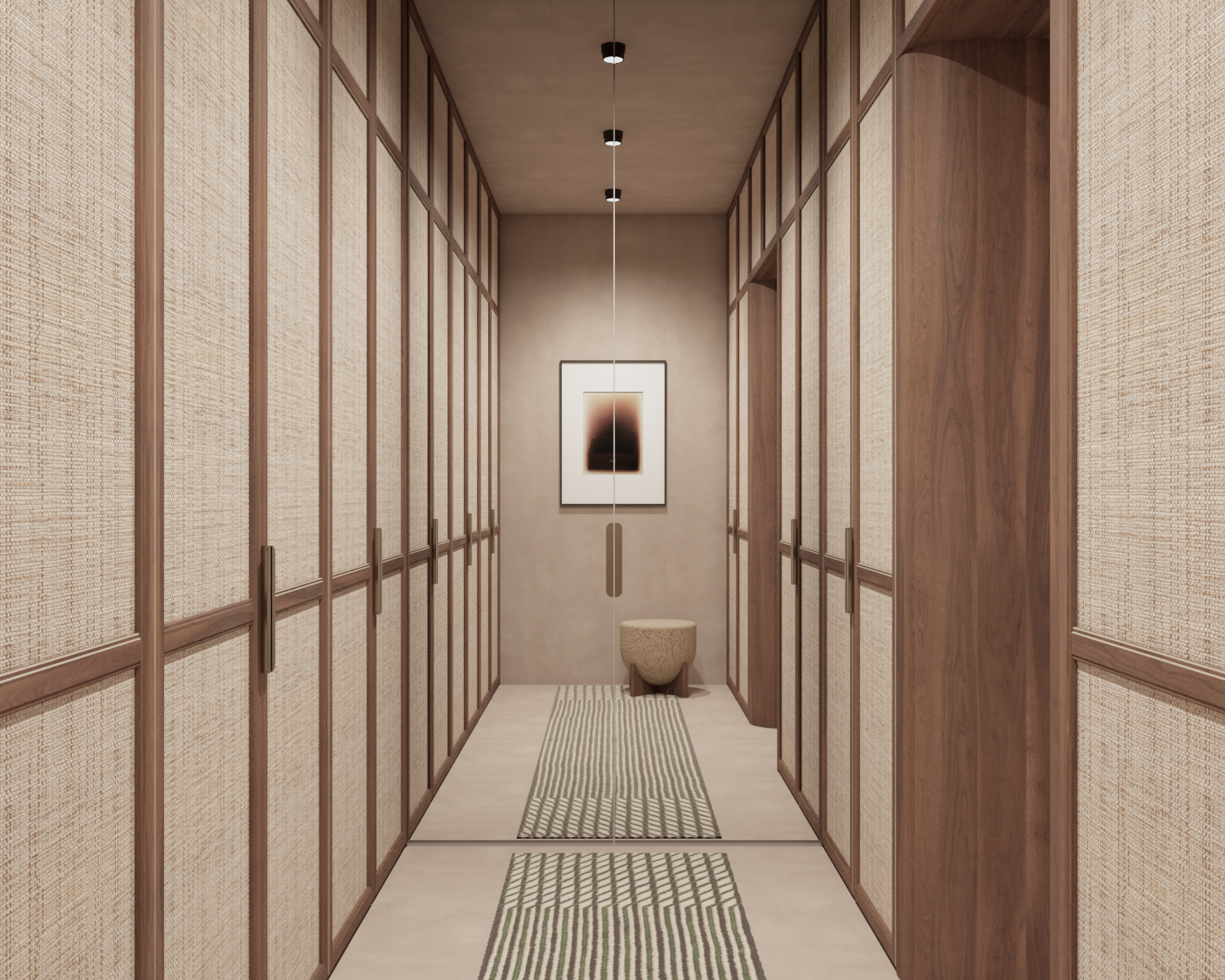 Im Fokus der ganzheitlichen Gestaltung standen die Entwicklung eines klaren Farb- und Materialkonzepts, individuelle Badentwürfe, maßgeschneidertes Küchendesign sowie die Planung eines privaten Spa-Bereichs. Die Innenräume zeichnen sich durch hochwertige, natürliche Materialien, ruhige Farbtöne und eine ausgewogene Balance aus Ästhetik und Funktionalität aus – ganz im Sinne eines modernen, minimalistischen Interior Designs.